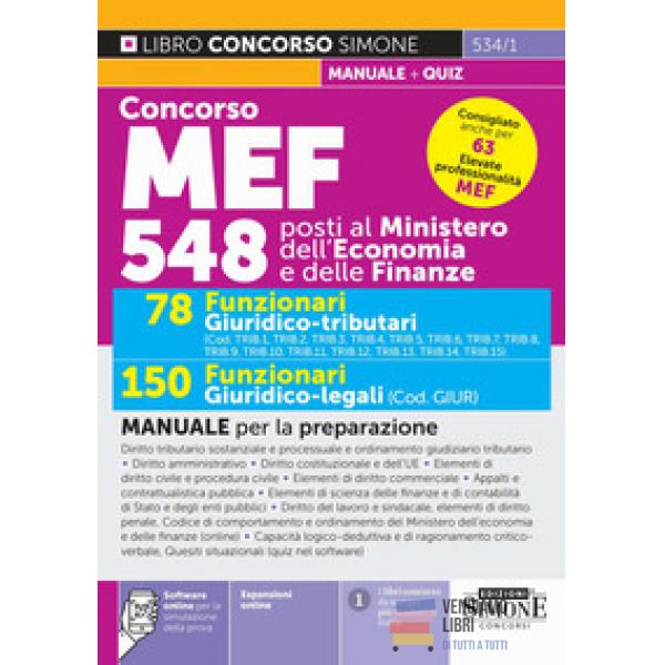 Concorso MEF 548 posti. 78 funzionari giuridico...Prezzo 45,00 €Disponibile subito Anteprima Aggiungi al carrello