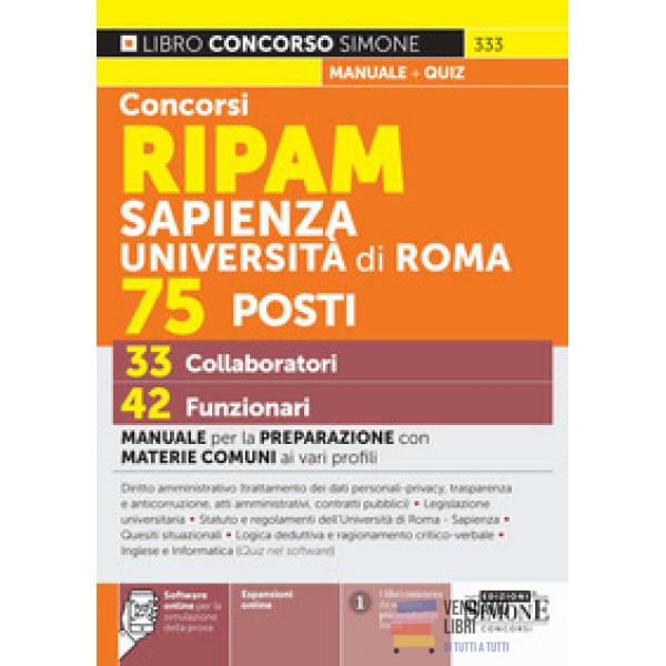 Concorsi RIPAM Sapienza Università di Roma 75...Prezzo 32,00 €Disponibile subito Anteprima Aggiungi al carrello