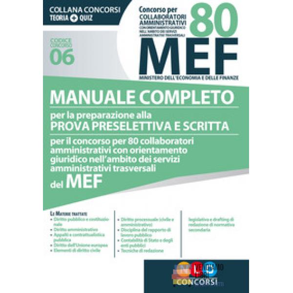 Concorso per 80 collaboratori MEF. Manuale...Prezzo 50,00 € Non disponibile Anteprima Aggiungi al carrello