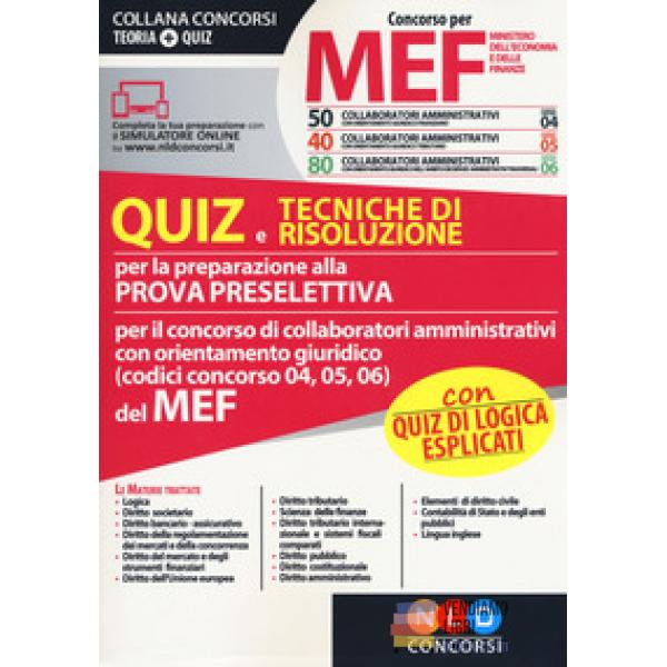 Concorso per 230 collaboratori MEF. Quiz per la...Prezzo 40,00 € Non disponibile Anteprima Aggiungi al carrello