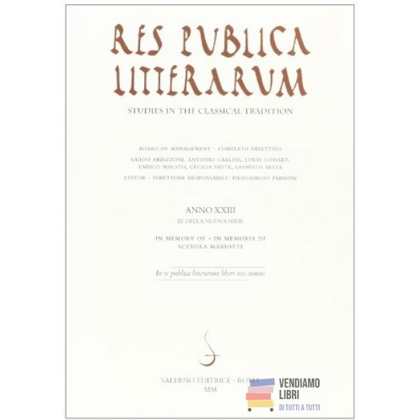 Res publica litterarum. Studies in the...Prezzo 51,00 € Non disponibile Anteprima Aggiungi al carrello