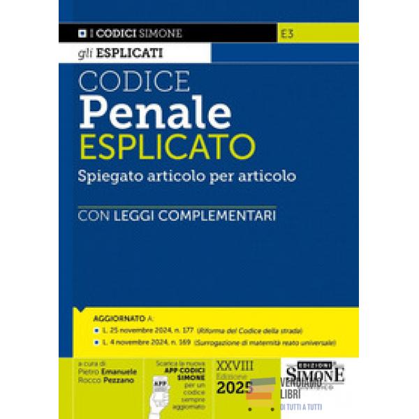 Codice penale esplicato. Spiegato articolo per...Prezzo 46,00 €Disp. in 1/2 gg lavorativi Anteprima Aggiungi al carrello