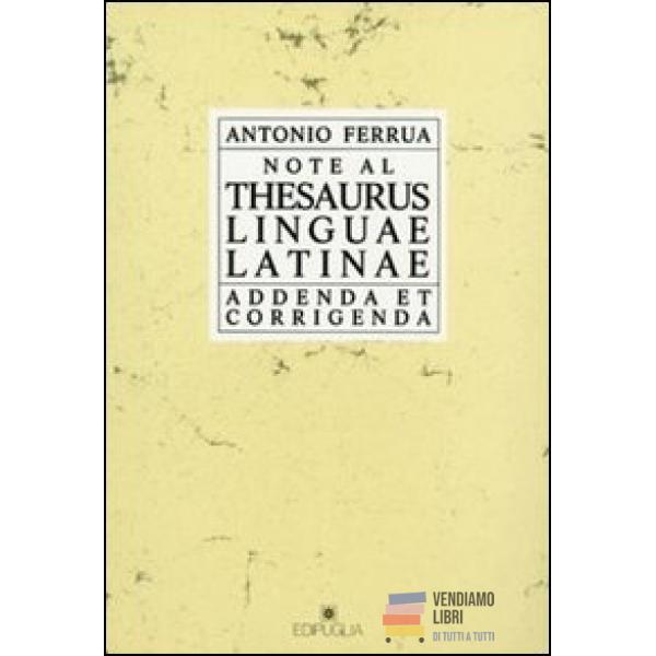 Note al Thesaurus linguae latinae. Addenda et... Prezzo 12,91 € Non disponibile Anteprima Aggiungi al carrello