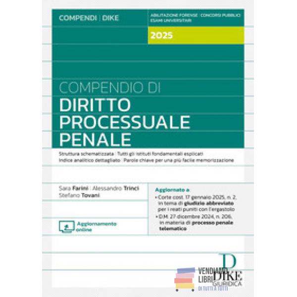 Compendio di diritto processuale penale 2025 Prezzo 28,00 € Disponibile subito Anteprima Aggiungi al carrello