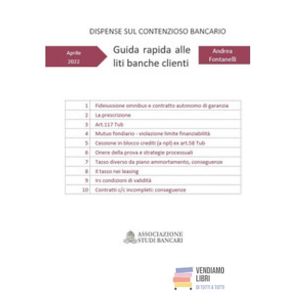 Guida rapida alle liti banche clienti. Dispense... Prezzo 100,00 € Non disponibile Anteprima Aggiungi al carrello